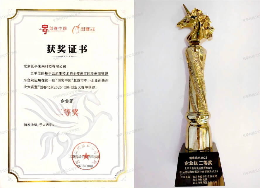 近日,在第十届“创客中国”中小企业创新创业大赛暨“创客北京2025”创新创业大赛中,云联盟会员企业长亭科技勇夺北京地区总决赛二等奖,并成功跻身全国企业组500强行列。长亭科技联合创始人、副总裁龚杰作为获奖企业代表参加了颁奖仪式。